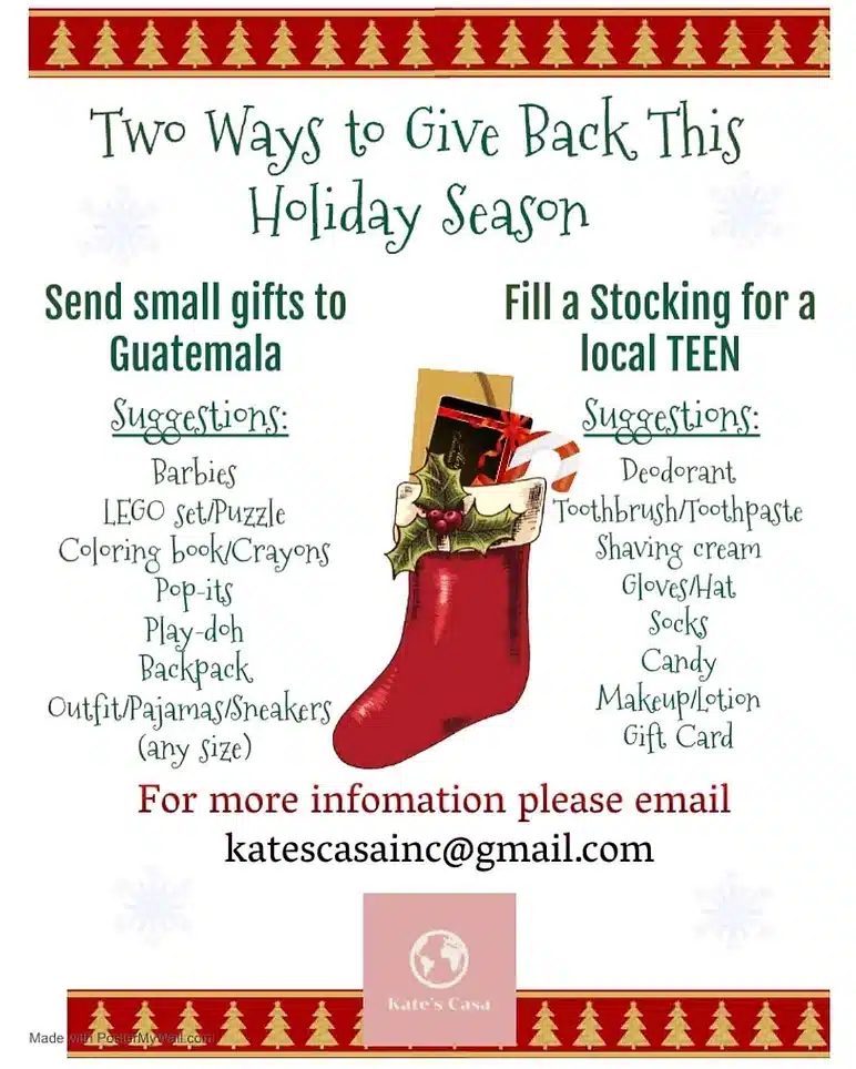 This holiday season, we’re running a Christmas drive to bring joy to children in Guatemala, as well as local teens and families. Your support will help provide much-needed clothing, shoes, and other essentials to brighten their holiday season.